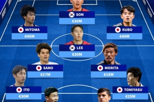 前鋒: 三笘薫(4500萬歐元)、孫興慜(3000萬歐元)、久保建英(4000萬歐元)