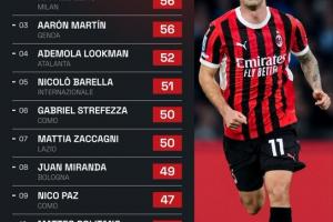 體育資訊4月23日訊 Squawka統(tǒng)計了本賽季意甲球員送出關(guān)鍵傳球次數(shù)的排行,普利西奇以60次位居第一。