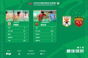 恭喜上海海港富盛經(jīng)開隊球員蒯紀聞獲評2025華潤飲料中乙聯(lián)賽第5輪最佳球員
