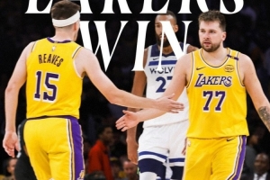 賽后,湖人發(fā)布了贏球海報,里夫斯和東契奇榮登封面。