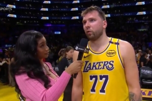 賽后,東契奇在場(chǎng)邊接受了記者采訪。談到自己成為湖人隊(duì)史第三位在前兩場(chǎng)季后賽中皆得到30分的球員,他說(shuō)道:“這很棒,但這些都不重要。我們必須得贏球。不管我是得30分還是10分,我們必須贏球。”