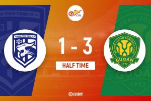 上半場比賽結(jié)束,武漢三鎮(zhèn)1-3北京國安。