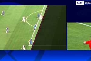 判例三:中超聯(lián)賽第8輪,上海申花VS武漢三鎮(zhèn),比賽第65分鐘,武漢三鎮(zhèn)隊(duì)進(jìn)球,助理裁判示意越位;裁判員判武漢三鎮(zhèn)隊(duì)越位犯規(guī)在先,進(jìn)球無效;VAR檢查并劃線后,確認(rèn)越位。