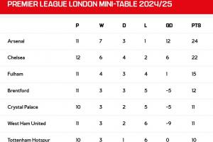 這將是阿森納連續(xù)第三個(gè)賽季,最終位列這一倫敦迷你積分榜的榜首。