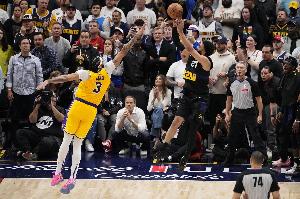 2024年4月23日,掘金主場迎戰(zhàn)湖人,總比分1-0領先的掘金在場面上反而落入下風。上半場尾聲詹姆斯、濃眉和拉塞爾三人聯(lián)手掀起一波攻勢幫助湖人在半場結(jié)束時建立起15分優(yōu)勢。下半場掘金如夢方醒拼命追分,終于在比賽結(jié)束前抹平了分差。最后時刻,賈馬爾-穆雷面對濃眉的防守殺到底角附近急停出手,球進燈閃!掘金101-99再下一城!