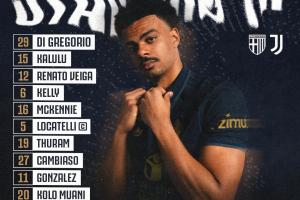尤文首發(fā):29-迪格雷戈里奧、15-卡盧盧、12-維加、6-凱利、16-麥肯尼、5-洛卡特利、19-圖拉姆、27-坎比亞索、11-岡薩雷斯、20-穆阿尼、9-弗拉霍維奇