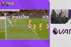 體育資訊4月24日訊?英超第34輪,阿森納vs水晶宮。比賽第70分鐘,厄德高挑傳,廷伯插上底線附近挑傳門前,馬丁內(nèi)利包抄破門!邊裁舉旗示意無效,VAR判定球先出了底線!