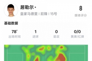 居勒爾本場(chǎng)比賽數(shù)據(jù)如下: