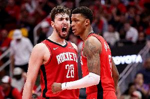 體育資訊04月24日訊 NBA季后賽首輪G2,火箭主場109-94擊敗勇士,1-1扳平大比分。