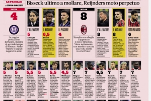 體育資訊4月24日訊 意大利杯半決賽次回合,米蘭3-0國米并以4-1的總比分擊敗對(duì)手晉級(jí)決賽,《米蘭體育報(bào)》賽后給雙方球員評(píng)分。