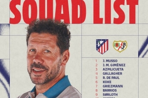 體育資訊4月24日訊 北京時間明天凌晨,馬競將在西甲第33輪比賽中主場對陣巴列卡諾,馬競公布了此役的球員名單,阿爾瓦雷斯、格列茲曼、加拉格爾在列。
