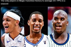 據(jù)統(tǒng)計,魔術(shù)隊史只有三人單季場均得分超過25分,他們是麥迪、奧尼爾和班凱羅。