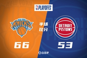 體育資訊4月25日訊 NBA季后賽東部首輪G3,尼克斯半場66-53領(lǐng)先活塞。