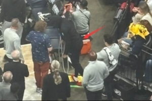 比賽最后階段,莫蘭特拄拐站到了球隊(duì)替補(bǔ)席后面。。。