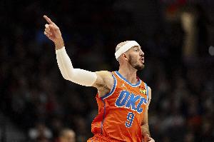 雷霆內(nèi)線霍姆格倫表現(xiàn)慢熱,在上半場僅拿1分,不過到了下半場大爆發(fā),第三節(jié)獨得16分,32分鐘的時間里,投籃16中8,三分球10中5,罰球4中3,拿到24分8籃板的數(shù)據(jù),正負值+18全場最高。
