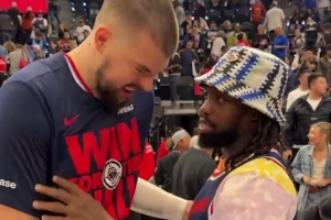 貝弗利今天穿著祖巴茨40號球衣前來觀戰(zhàn)