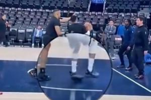 賽后,快船記者發(fā)布了一則視頻。視頻顯示,威斯布魯克在熱身時(shí)扭傷了腳踝,他憤怒地喊到:“噢!干!(OH,FxxK)”隨后將球狠狠砸向地面。