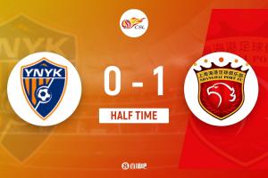 上半場比賽結(jié)束,上海海港客場暫時1-0領(lǐng)先云南玉昆。