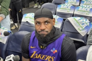 體育資訊4月26日訊 今日,湖人前鋒詹姆斯在投籃訓(xùn)練后接受了采訪。