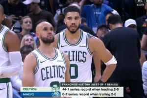 今日比賽前,凱爾特人大比分2-0領(lǐng)先魔術(shù)