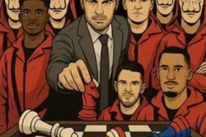 這些設(shè)計靈感來源于熱門Netflix劇集《紙鈔屋》(La Casa de Papel),其中兩款tifo將標(biāo)題改為“米克爾之家”(La Casa de Mikel)。另外兩款設(shè)計中包含棋盤元素,其中一條信息寫著“他們一個個倒下”,而另一款則沒有任何文字。棋盤元素似乎是參考了皇馬球迷在上周伯納烏四分之一決賽次回合比賽前展示的橫幅。