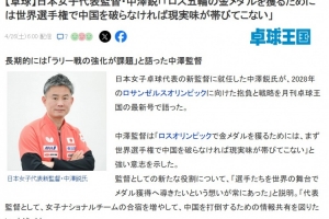 體育資訊4月26日訊 日本女乒主教練中澤銳在最新一期《卓球王國》的采訪中談到了他對2028年洛杉磯奧運會的期望和目標。