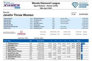 體育資訊4月26日訊 2025世界田聯(lián)鉆石聯(lián)賽在廈門迎來全球揭幕戰(zhàn),中國選手蘇玲丹獲得女子標(biāo)槍銅牌。