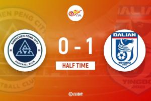 上半場比賽結(jié)束,深圳新鵬城0-1大連英博。