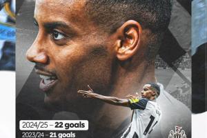 這粒進(jìn)球也讓伊薩克本賽季的英超進(jìn)球數(shù)來到了22粒,打破了自己的單賽季英超進(jìn)球紀(jì)錄: