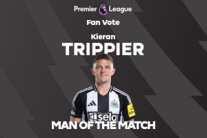 體育資訊4月27日訊 英超第34輪,紐卡斯?fàn)?-0伊普斯維奇。賽后,紐卡后衛(wèi)特里皮爾當(dāng)選全場最佳球員。