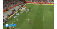 體育資訊04月27日訊 國王杯決賽,巴塞羅那vs皇家馬德里,比賽第44分鐘,巴薩角球開出沒人碰到,皮球擊中立柱