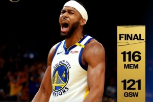 體育資訊4月16日訊 附加賽勇士121-116險(xiǎn)勝灰熊,晉級季后賽。