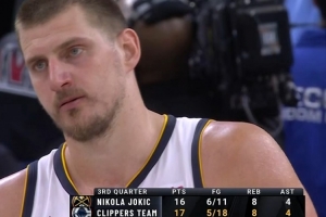 第三節(jié)約基奇單節(jié)11投6中,三分3中2,罰球2中2砍下16分8籃板4助攻,快船全隊(duì)18中5拿到17分8籃板4助攻。