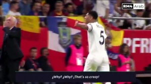 貝林在接連被吹罰犯規(guī)后扔掉皮球:為什么?為什么?瘋了吧,F(xiàn)**k off(貝林此前因?yàn)榇搜哉摷t牌+停賽)。